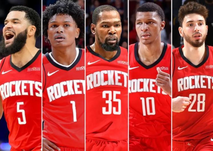点评:自从五年前送走哈登以来,这支球队进入了漫长的重建期,上赛季虽然最终打出了西部第二的好成绩,但5年来依旧从未突破过首轮。休赛期随着历史级得分手杜兰特的加入,球队最迫切的得分问题被解决,球队内线核心申京也在欧洲杯赛场打出了优异表现,展现了自己夏天的训练成果。本休赛期火箭队做得最成功的地方就是在保留了球队全部根基,没有为了得到杜兰特而伤筋动骨,阿门、小贾、申京、伊森、谢泼德这些被太阳索要的资源,最终全部被火箭留在谈判桌上。但翻开阵容结构来看,1号位的问题依旧没有解决,新赛季就看谢泼德能否成为范弗利特真正的合格替补,这对火箭最终冲冠至关重要!